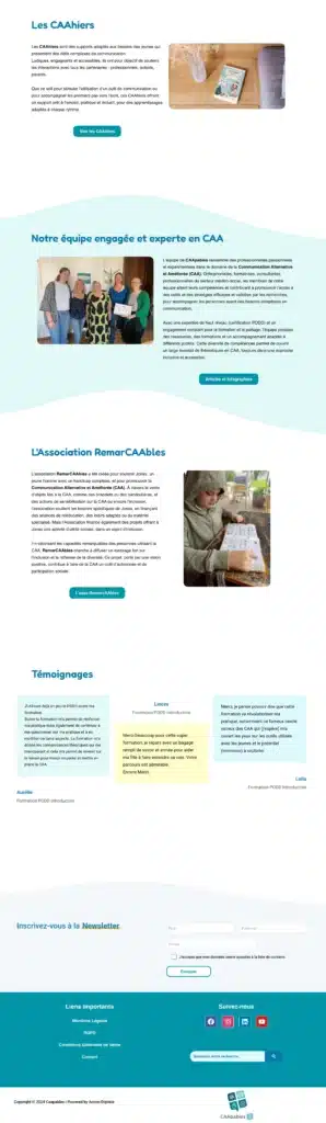 Desenvolvi ainda um menu inspirado nos cadernos de CAA e garanti que todo o site fosse acessível, claro e de fácil leitura, sem animações, adequado a pessoas com deficiência.
